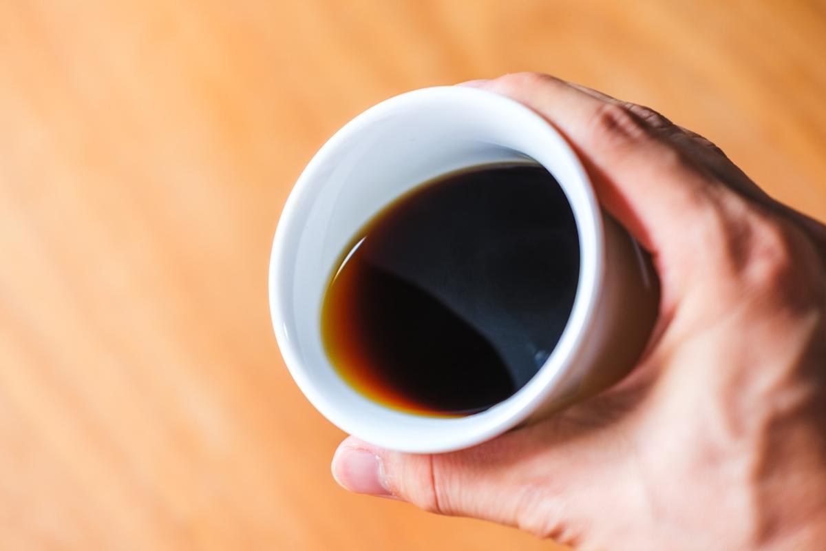飲むときに自然と顎が少し上がることで、コーヒーが舌全体に触れるのも印象的。