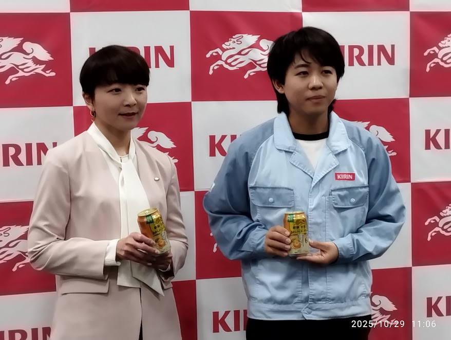 キリンホールディングス(南方健志社長)の飲料未来研究所はこのほどコーヒーチェリーを使った素材の開発に成功、11月25日から同素材を使った「麒麟特製みかんサイダーサワー」を期間限定で新発売する。同商品は廃棄するコーヒーチェリーの果肉をキリン独自の乳酸菌と酵母で発酵させる「ワインの香気増強技術」を応用したもので、香味や体感の向上などに役立たせることができる。この技術は清涼飲料水だけではなくビール、RTDなど他の飲料にも利用でき、アルコール関連の社会課題解決の手段にもなる。飲料未来研究所辻さや香さんは「コーヒーチェリーを有効活用することによってコーヒー農家の貧困対策や環境問題にも対処でき、飲みごたえの強化、香味向上によって飲料の新しい世界を広げることにもなる」と述べた。コーヒーチェリーとはコーヒーの木に実のる赤い実のことで、廃棄される果肉、果皮は世界で年間2000万トンといわれており社会問題化されている。キリンでは2025年度400㎏の使用を予定している。商品概要アルコール度数6%、350,500ml缶、オープン価格。上質で複層的なみかんの風味と余韻が楽しめる。