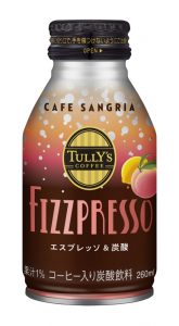 伊藤園(社長:本庄大介、本社:東京都渋谷区)は、スペシャルティコーヒーショップ「タリーズコーヒー」で味わうようなおいしさで好評を博している「TULLY’S COFFEE」ブランドから、ほろ苦いエスプレッソに炭酸の爽快感で、日常に新しい刺激届ける大人の炭酸コーヒー「TULLY’S COFFEE FIZZPRESSO CAFE SANGRIA」を10月6日に新発売する。今回、新発売する同商品は、サングリアに着想を得た、エスプレッソのほろ苦い余韻とピーチやレモンのフルーティーさが楽しめる有糖のコーヒー入り炭酸飲料。エスプレッソの豊かな風味にトニックウォーターの甘い刺激をアクセントに加えた、フルーティーでさっぱりとした味わいのため、仕事や家事の合間などリフレッシュしたいときにおすすめと同社。【製品概要】■製品名:TULLY’S COFFEE FIZZPRESSO CAFE SANGRIA ■品名:コーヒー入り炭酸飲料 ■容量・容器:260mlボトル缶 ■希望小売価格税込(税別):226円(210円) ■発売日:10月6日(月) ■販売地域:全国