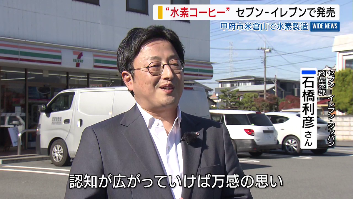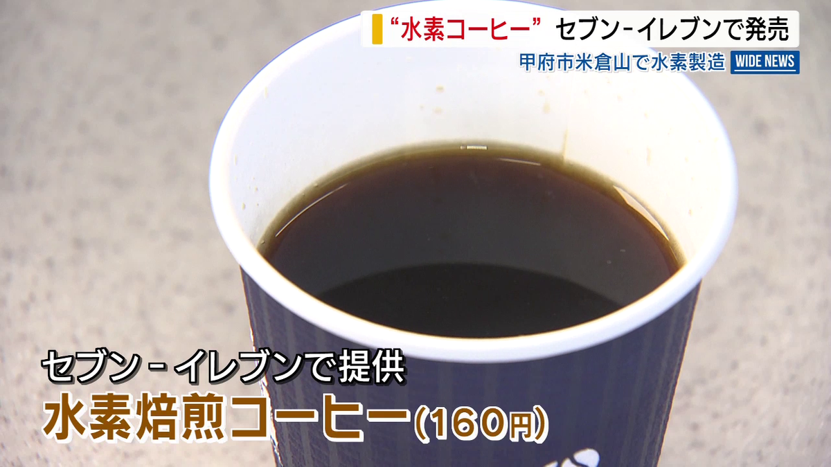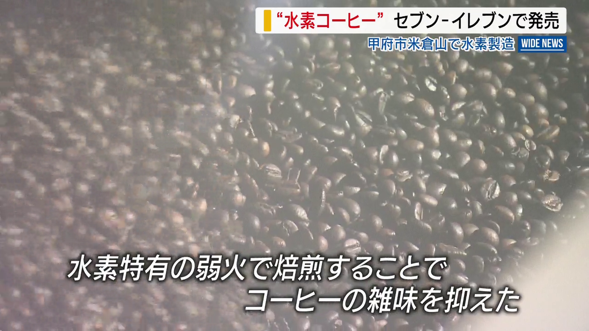 山梨県甲府市の米倉山で作った水素で焙煎したコーヒーが、全国のセブン-イレブンで発売されました。 コンビニ大手、セブン-イレブンで先月から提供が始まった水素焙煎コーヒーです。 セブン-イレブン・ジャパンと大手飲料メーカーのUCCが共同で開発したもので、甲府市米倉山の太陽光発電で製造した水素を熱源に焙煎されています。 水素特有の弱火で焙煎することで、コーヒーの雑味を抑えたということです。セブン-イレブン・ジャパン 商品本部 石橋利彦さん「(定番商品を)本当に多くのお客様にご愛顧いただいている中で、またそれ(定番)とは違った味わいが今回の技術によって実現できる。山梨県のグリーン水素を使ったコーヒーだよということを、飲んだあとの味わいの余韻として、認知が広がっていけば万感の思い」 水素焙煎コーヒーの発売に、長崎知事は…長崎知事「これはひとつ水素の新しい可能性をまさに極めて身近なところで示していただいた、本当に素晴らしい事例だと思う」
