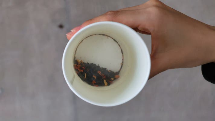 リーフティーカップは、カップの底にフィルターを内蔵。お湯を注ぐだけでお茶が楽しめる構造です。