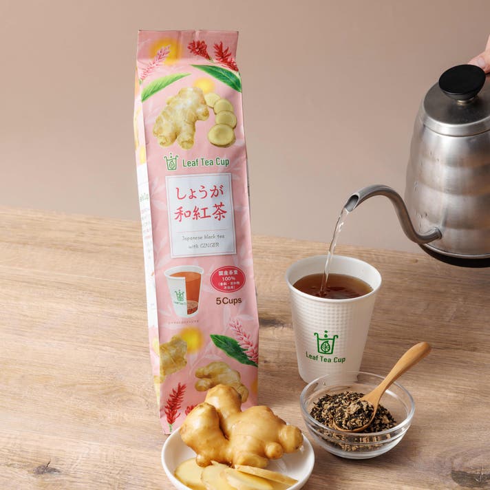 苦みの少ない国産紅茶にまろやかな香りの熊本県産八郎生姜をブレンドしました。お好みでミルクを加えてもおいしくお召し上がりいただけます。