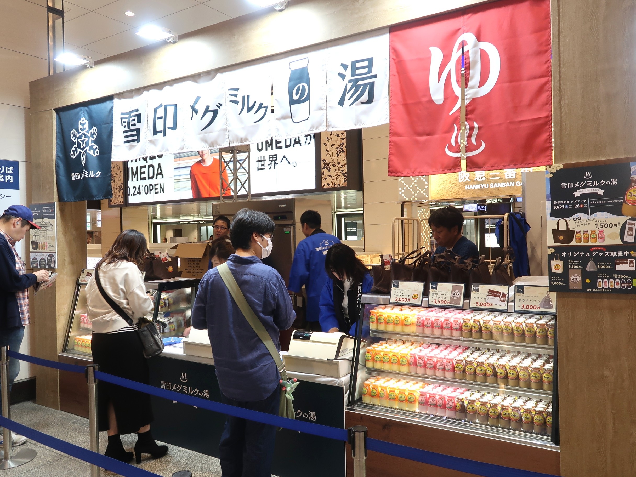 昭和世代にとっては懐かしの飲料である、瓶入りのコーヒー牛乳やフルーツ飲料が大阪・梅田のビッグマン前広場で、行列のできる人気ぶりを示した。