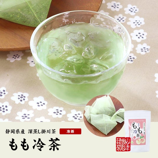 静岡県産の深蒸し茶は普通の煎茶よりも約2倍長く蒸して作られる分、自然な味わいでまろやかな口あたり、濃く鮮やかな緑色が特長です。 また、熱に弱いとされるビタミンCが安定的に摂取できるといわれています。 そこにももの生産量日本一を誇る山梨県産の白桃をブレンドしました。 水出しだけでなく、冬はホットでもおすすめです! 緑茶を引き立てるももの香り