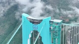 中国の「世界で一番高い橋」の塔頂部、地上800mにカフェがオープン予定