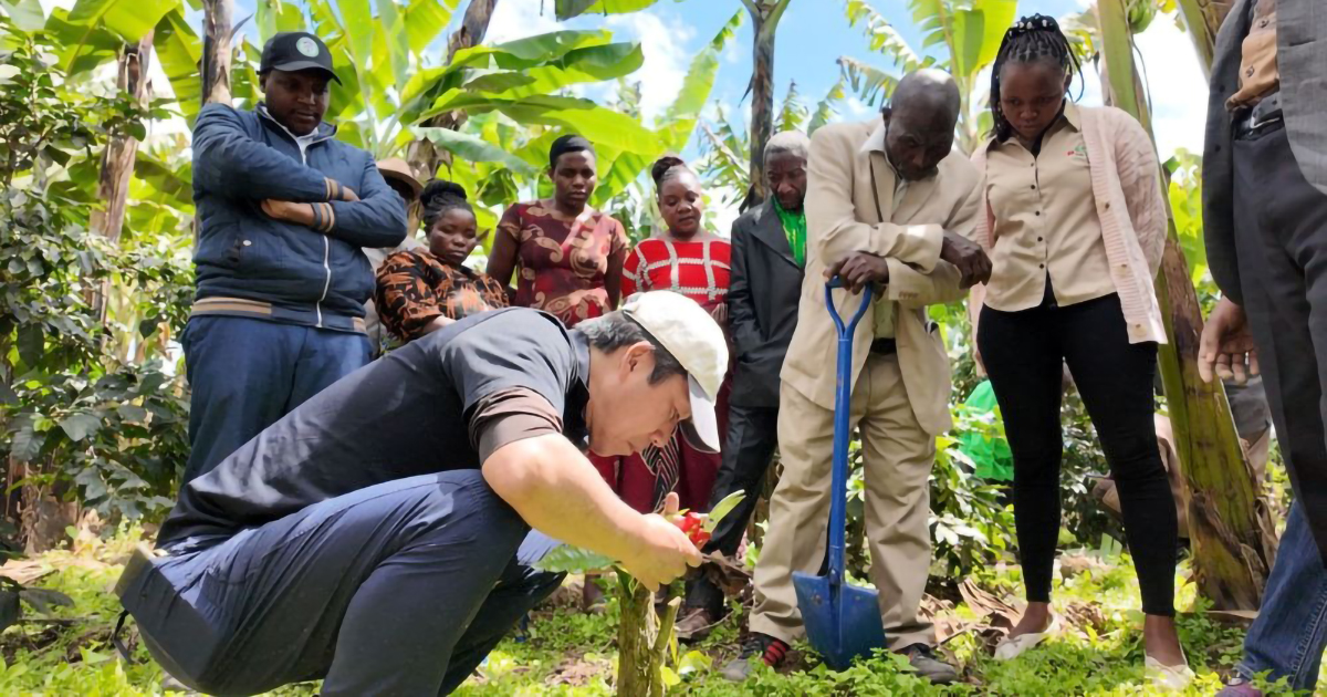 UCCと丸紅がタンザニアの小規模農家支援 持続可能なコーヒー生産体制を構築へ2025.10.27(※本記事は「食品新聞」に2025年9月21日付で掲載された記事を、許可を得て掲載しています)タンザニアの生産者に向けて台切り(カットバック)のデモンストレーションを行うUCC上島珈琲の中平尚己農事調査室室長国連の専門機関である国際農業開発基金(IFAD: イファッド)・農林水産